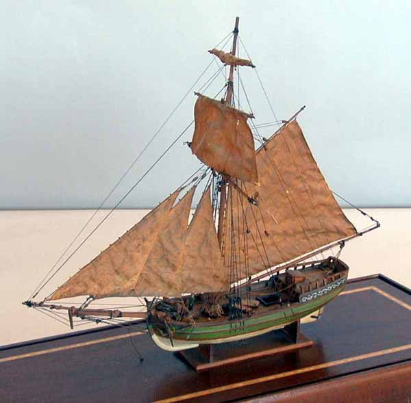 As things happen, a model of the ship "Experiment" also arrived for cleaning and repair to damaged sails. A gaff-rigged cutter, the original was the ship used to tranport slaves from the Amistad to New Haven, Connecticut for trial. As movie-goers will know, these slaves were defended by ex-president (6th) John Quincey Adams, ( son of John Adams - another ex-president of the U.S., and another link in this story).